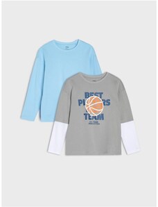 Sinsay - Dvojbalenie tričiek s dlhým rukávom - sivomodrá