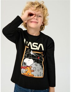 Sinsay - Bavlnená košeľa s potlačou NASA Peanuts - čierna