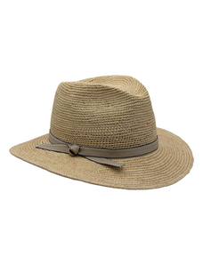 Fiebig - Headwear since 1903 Trilby Raffia - slamený šedý klobúk s koženou stuhou