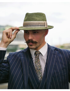 Luxusný panamský klobúk Fedora so sivo-zelenou stuhou - ručne pletený, UV faktor 80 - Ekvádorská panama - Mayser Gedeon