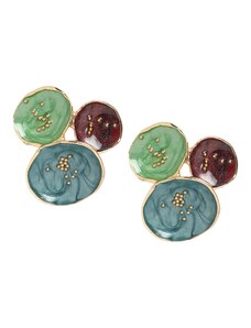 SOHI Náušnice 'Pansy' zlatá / petrolejová / svetlozelená / vínovo červená