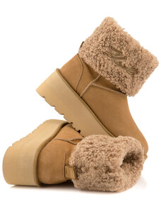 Boto Dámske Snehule Na Platforme Zateplené Kožúškom Khaki Vesirae