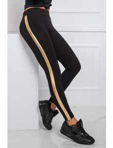 RUE PARIS Čierne legíny Lea so zlatým pruhom RV-LG-7324.63-black