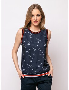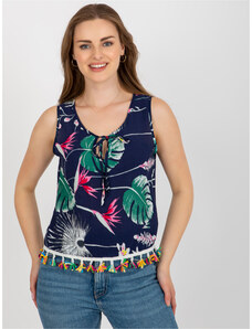 BASIC Tmavomodrý nátelník s potlačou a strapcami AT-BZ-2401C.19-dark blue