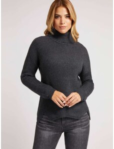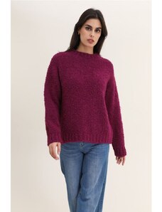 Legínovo Dámsky sveter z baby alpaky s golierom a výstrihom do V hnedý