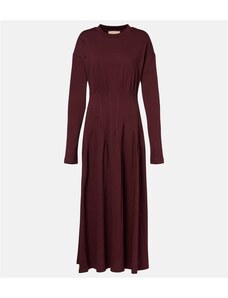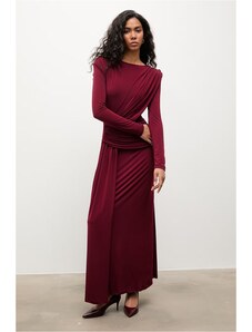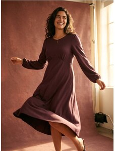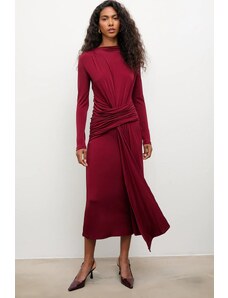 Sinsay - Midi šaty s bufanovými rukávmi a riasením s viskózou - bordová