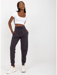 RUE PARIS Tmavosivé dámske tepláky s vreckami RV-DR-7341.30P-grafit
