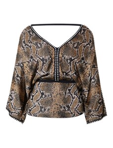 Karen Millen Blúzka svetlohnedá / čierna / strieborná / šedobiela