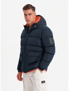 Ombre Men's jacket with asymmetrical quilting and hood - navy blue