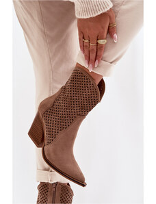 Kesi Béžové dámske perforované členkové topánky na stĺpikovom podpätku Rivorina