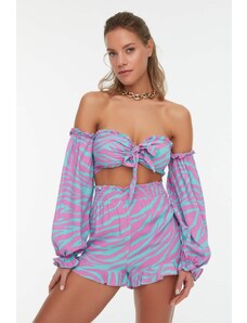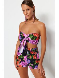 Trendyol kvetinový vzor tkaná kravata 100% bavlnená blúzka a šortky set