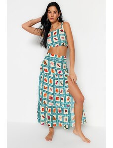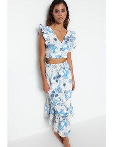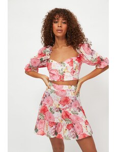 Trendyol súprava blúzky a sukne s ovocným vzorom a rozparkom