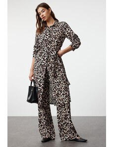 Trendyol Brown Leopard Patterned Belted Viscose Regular Woven Bottom-Top Set