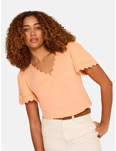 RUE PARIS Svetlo oranžové rebrované tričko Alissia s čipkou na rukávoch -RV-BZ-7529.92-light orange