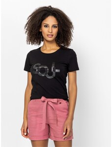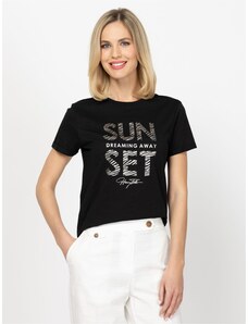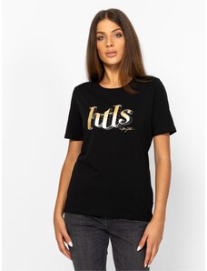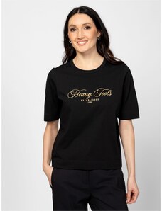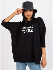 RUE PARIS Čierne dámske voľné tričko s nápisom RV-BZ-7553.26-black
