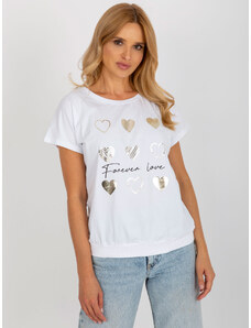 RUE PARIS Biele tričko so zlatými srdiečkami RV-BZ-8954.26P-white