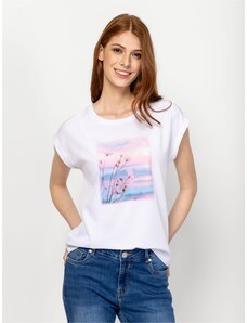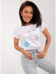 BASIC FEEL GOOD Biele tričko s aplikáciou kvetov -RV-TS-9648.30-white