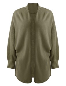 MladaModa Dlhý kardigán s voľnou kapucňou khaki