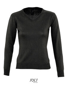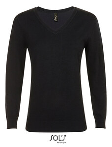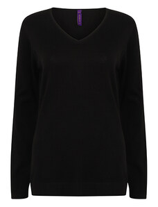 MladaModa Asymetrický sveter s véčkovým výstrihom model 92585 čierny