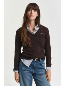 SVETER GANT STRETCH COTTON CABLE V-NECK DEEP BROWN