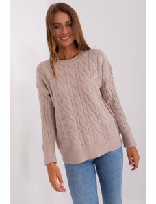 MladaModa Klasický sveter s vrkočovým vzorom model 23527 béžový