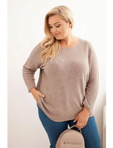 MladaModa Voľný sveter s rozparkami po stranách model R2025 farba fango