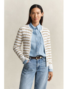 SVETER GANT STRETCH COTTON CABLE STRIPE CARDI OAT BEIGE
