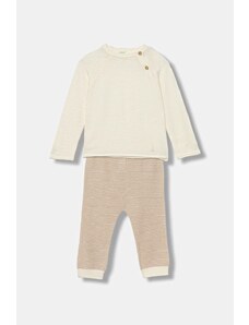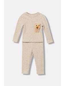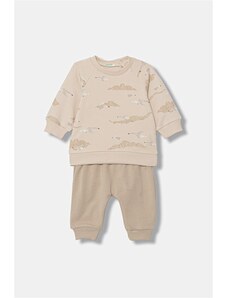 Detská súprava United Colors of Benetton na bežné nosenie je univerzálny set, ktorý zaručuje pohodlie a voľnosť pohybu počas rôznych aktivít. Tento béžový model pozostávajúci z bundy a nohavíc je vyrobený z príjemnej bavlnenej zmesi, čo zaisťuje komfort pri nosení. Je to ponuka pre deti, ktoré oceňujú klasický štýl s moderným akcentom, ideálna pre mestské štylizácie a neformálne vychádzky.