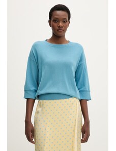 Sveter z kolekcie United Colors of Benetton. Model vyrobený z tenkej, elastickej pleteniny. Panenská vlna je ľahšia ako klasická vlna. Vyznačuje sa výnimočnou mäkkosťou, jemnosťou a odolnosťou.