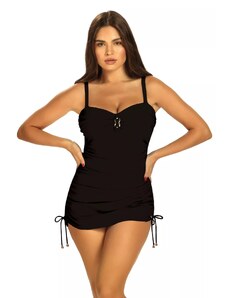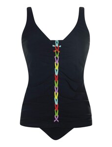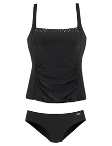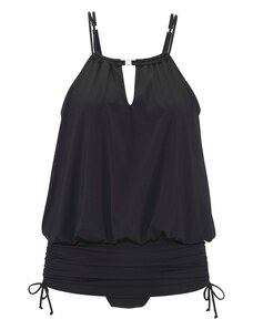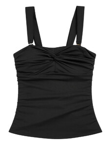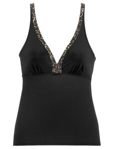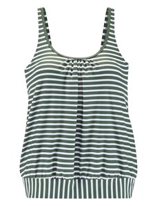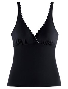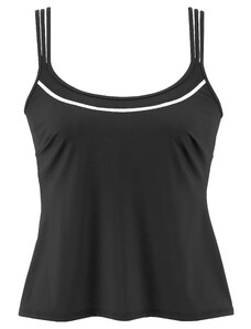 A simple bikini that fully embodies reduced form and maximum comfort. Its wide straps are set close to the shoulders and form a square, straight neckline with a body resembling a tank top. The panties offer high leg cutouts at the front and back and accentuate the firm buttocks. For all those who like it sporty.