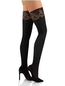 Samodržiace pančuchy z hladkého mikrovlákna v hrúbke 60 den. Ozdobná čipka na silikóne.