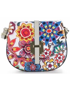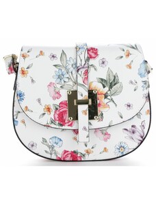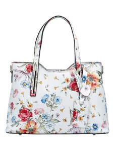 Delami Vera Pelle Štýlová dámska kožená kabelka do ruky Petronela, biela/kvety