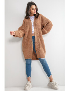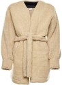 Mäkký, teplý kardigán na chladné a daždivé dni. Ovčia vlna vás ochráni pred chladom a udrží vás v teple. Vlna je prírodný a funkčný materiál, ktorý máme radi. Vďaka svojej hrejivosti je skvelý na oblečenie a zároveň je to veľmi ľahký materiál. Kardigán má okolo pása opasok, takže si môžete sami upraviť obvod pre svoje pohodlie. Predĺžená dĺžka chráni bedrovú oblasť pred prechladnutím. Vlnený kardigán využijete ako elegantný a hrejivý top na každodenné nosenie aj na spoločenské udalosti. Rozmery: Dĺžka