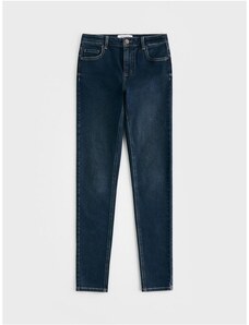 Reserved - Slim džínsy so stredne vysokým pásom - tmavomodrá