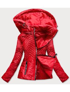 S'WEST Krátka červená dámska prešívaná bunda s kapucňou (B9566)