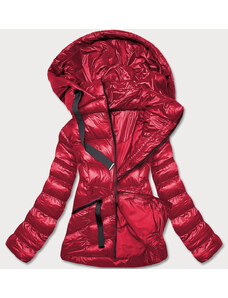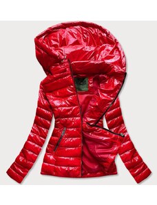 S'WEST Lesklá červená prešívaná dámska bunda s kapucňou (B9560)