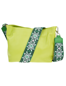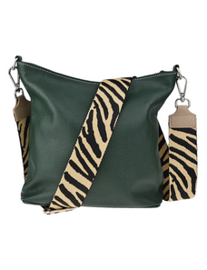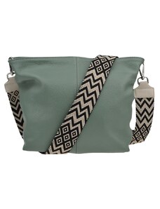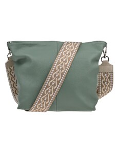 Praktická zelená kabelka uzatvárateľná na zips, nositeľná cez rameno alebo cross-body (krížom). Vo vnútri disponuje priečkou, ktorá zároveň slúži ako úložná priehradka so zipsom a na bočnej stene sa nachádza ďalšie zipsovacie vrecko. Hĺbka jej dna je 13 cm.